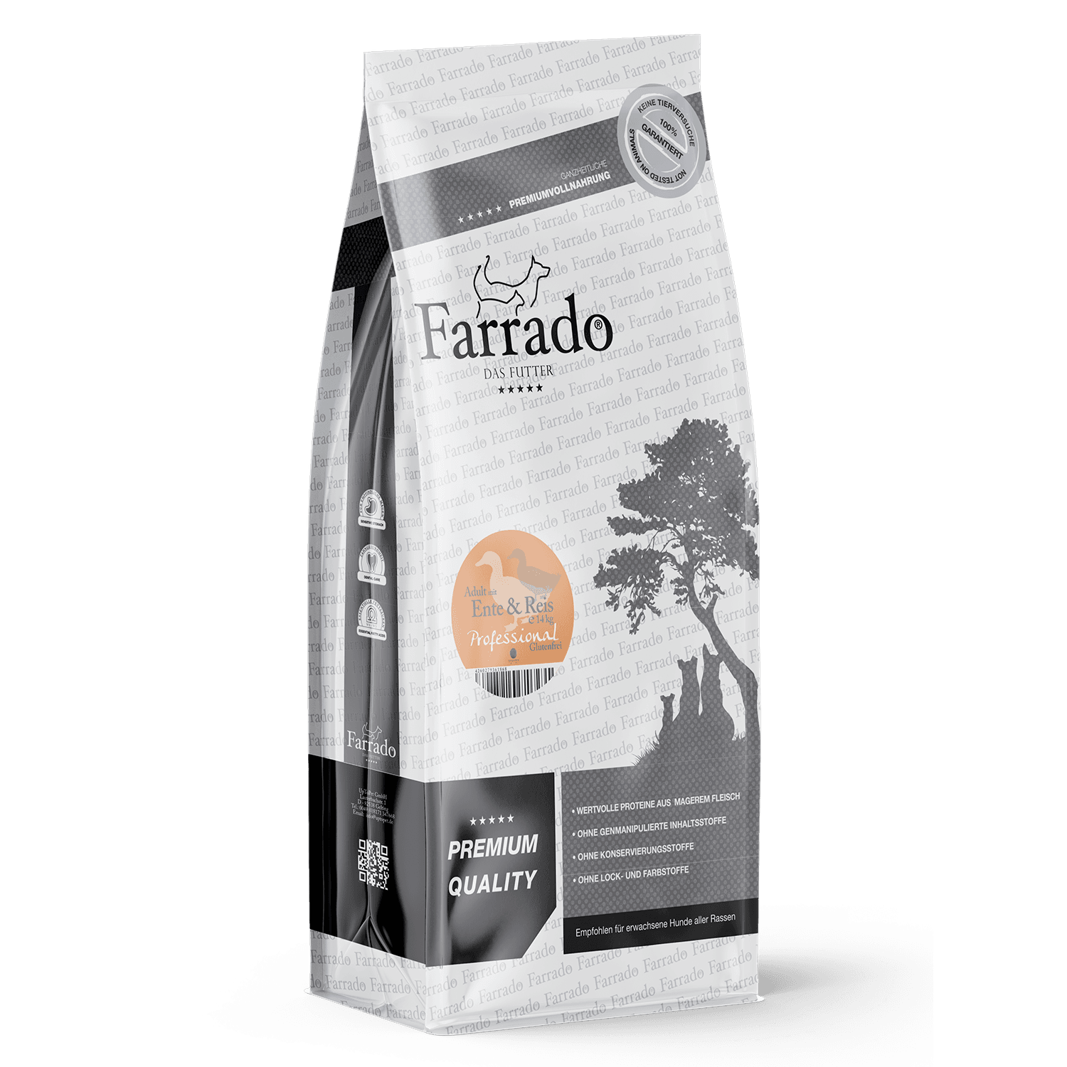 FARRADO PROFESSIONAL ENTE & REIS ist ein leicht verdauliches Futter, das entwickelt wurde um den Nährstoffbedarf aller normal aktiven, ausgewachsenen Hunde zu decken. ENTE & REIS PRO enthält einen hohen Anteil an hochverdaulichem Reis (mind. 10%) und wird ohne Verwendung von Weizen, Gerste oder Soja glutenfrei hergestellt. Natürliche Mineralien, Vitamine und Aminosäuren aus Meeresalgen, Bierhefe und MOS unterstützen das Verdauungssystem und fördern gesunde Haut und ein glänzendes Fell.