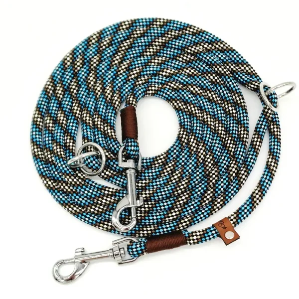 2. Sicherheit an erster Stelle: Die Leine ist mit einem stabilen Karabinerhaken ausgestattet, der sicher an jedem Halsband befestigt werden kann. So kannst du deinen Hund ohne Sorgen führen, denn die Sicherheit deines Haustiers steht bei uns an erster Stelle.